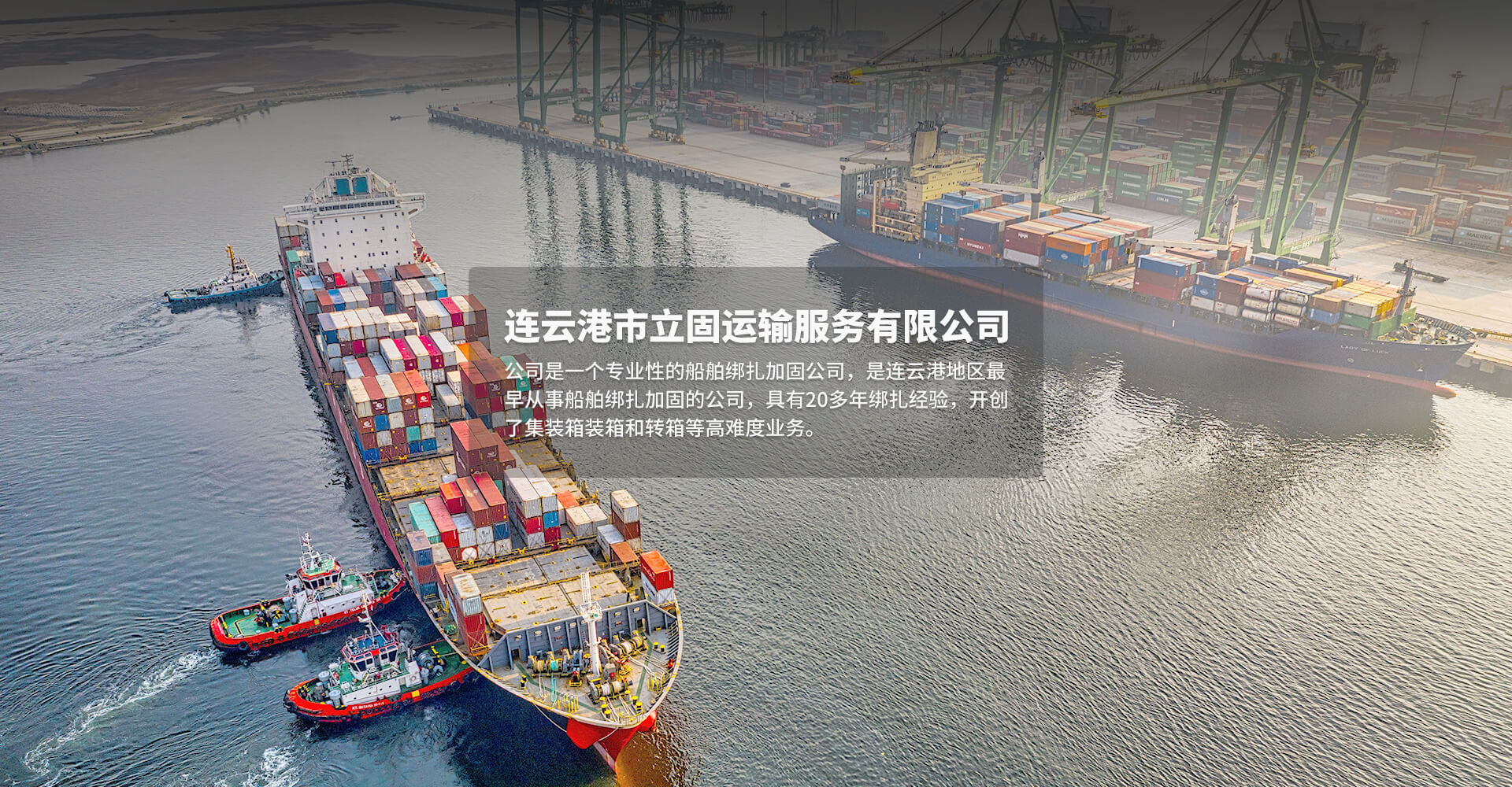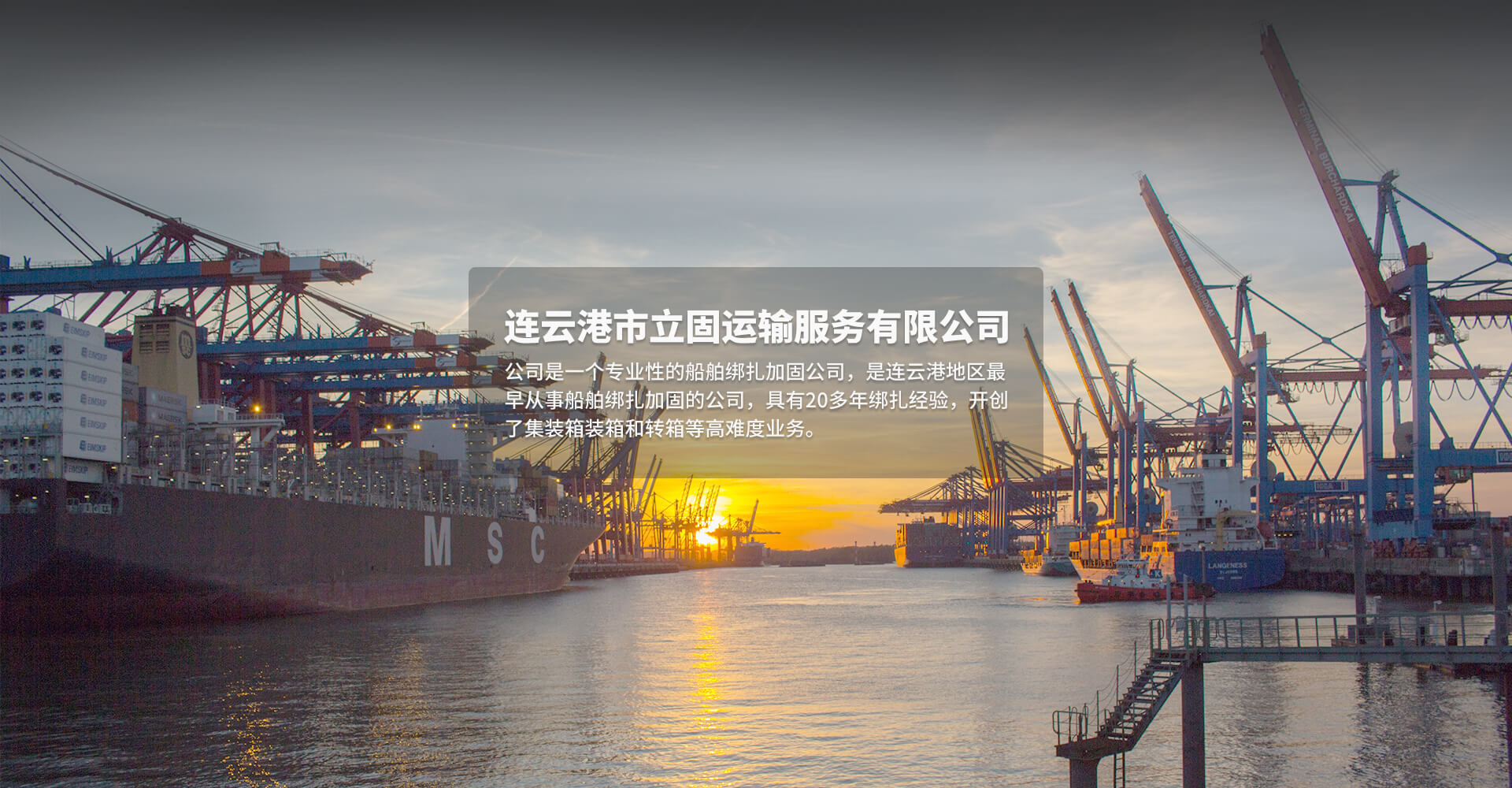 連云港市立固運(yùn)輸服務(wù)有限公司成立于1997年,是集生產(chǎn)、銷(xiāo)售于一體的實(shí)體型企業(yè),主要經(jīng)營(yíng)范圍包括國(guó)內(nèi)外船舶貨物綁扎加固,船舶物料供應(yīng)與回收;專(zhuān)業(yè)加工生產(chǎn)各類(lèi)型的木托盤(pán)、木制包裝箱、免熏蒸膠合板木托盤(pán),膠合板木箱等,并為客戶(hù)設(shè)計(jì)定制、安裝服務(wù)。